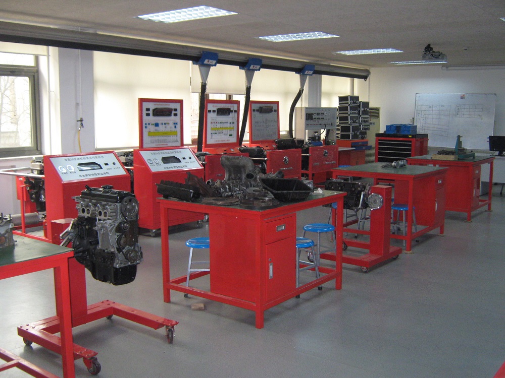 汽车维修实训基地位于北京劳动保障职业学院南校区(朝阳区惠新东街5号)南楼一层大车间及二层,共有7个实训室/区,使用面积约1175平方米。基地装备有电控发动机检测系统实验台、发动机拆装实训台架、自动变速器实验台、自动变速器总成、ABS系统实训台、空气悬架实训台、动力转向试验台、前后桥结构展示台、全车电气系统实训台、网络系统实训台、安全气囊实训台,电控电气实验台、灯光系统试验台、舒适系统实验台、四轮定位仪、汽车综合故障分析仪、尾气分析仪、灯光检测仪、底盘测功机、轮胎平衡机、扒胎机、5051B解码器、实训用车等设备共计144台套,可进行汽车修理工(四级、三级、二级)的职业技能培训,能同时满足66名学生的实训需要。
