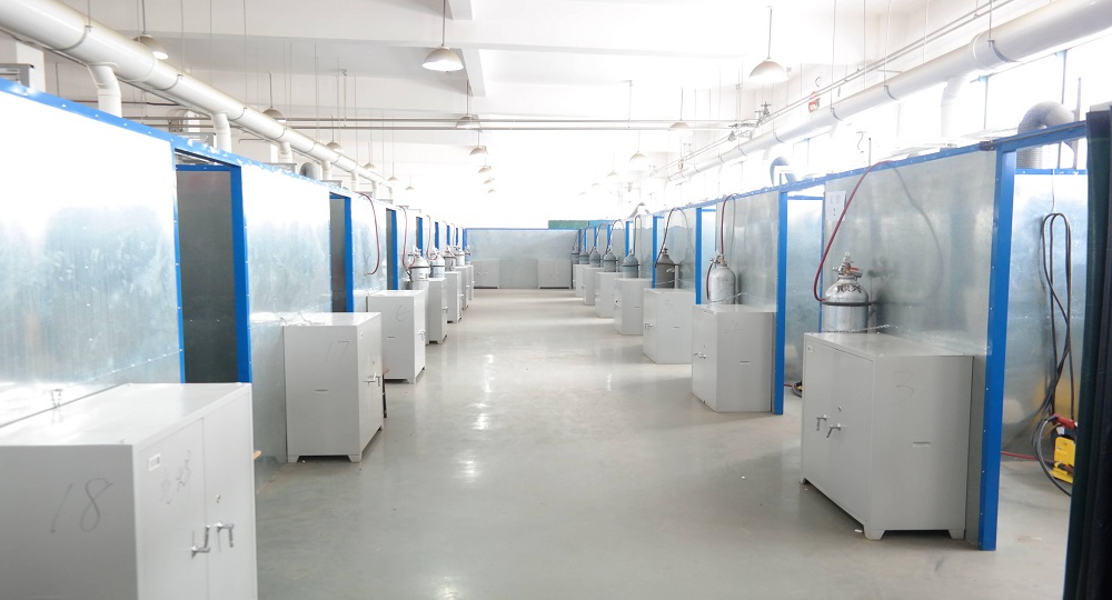 焊接实训中心有焊接设备40余台套,其中交流焊接机15台、CO2气体保护焊机8台、脉冲直流氩弧焊机7台、交直流氩弧焊机1台、便携式氩弧焊机1台、自动埋弧焊机1台、火焰自动切割设备1台、气焊气割设备5套、焊条烘干设备1台、磁粉检测设备1套、超声波探伤设备1套、管板自动焊接设备1套、钨极磨削机1台以及相应的工量具等。
