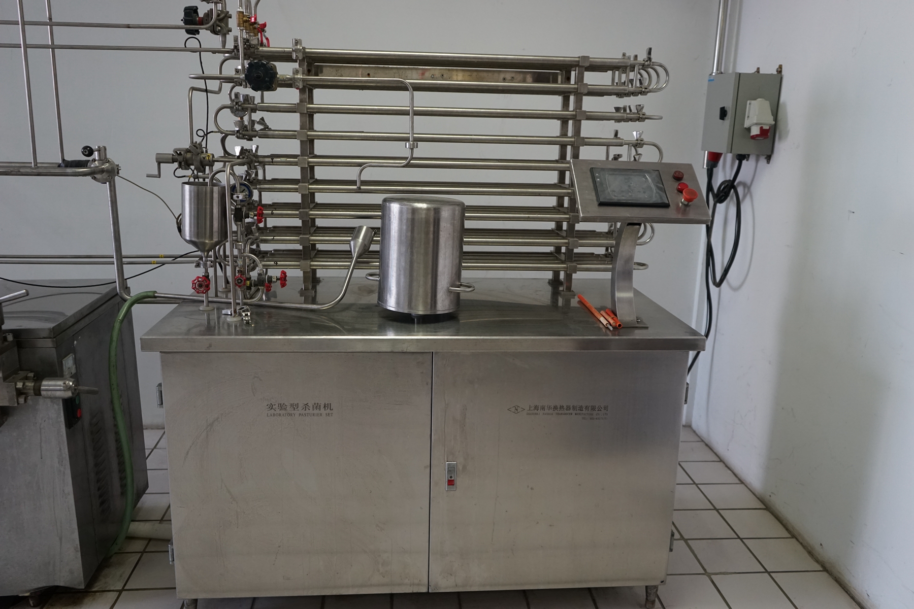 小型超高温杀菌机,也称实验型超高温杀菌机(UHT)是专门针对各大学院校的实验室及生产单位的研发机构为获取试验数据而制作的管式杀菌机,集加热、杀菌、冷却、灌装为一体、充分模拟生产车间的实际生产状况、真实地反映生产数据于实验室。可选配均质机,无菌灌装室等。
